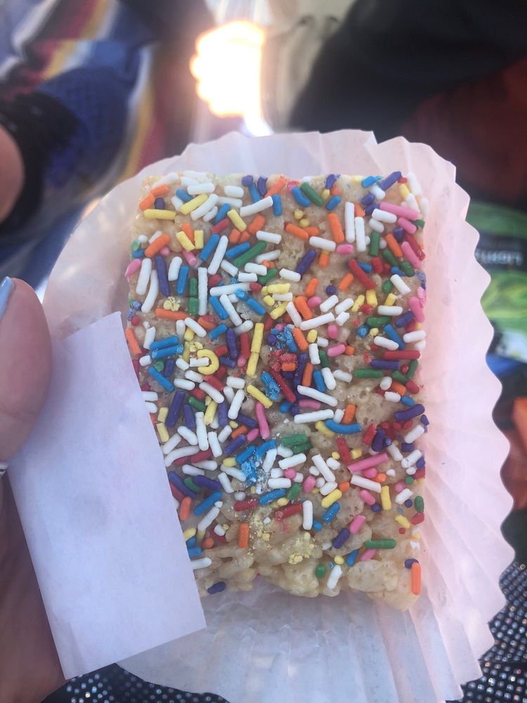 Rainbow sprinkles on a chewy moist cookie baked right under the Castro flag.