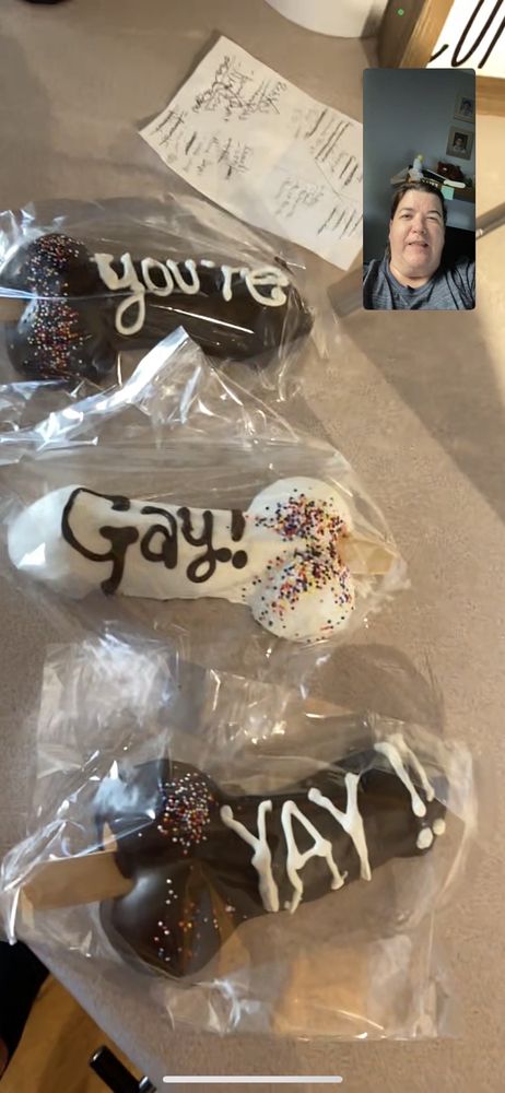 This phallic treat is more than a mouthful! Each is shaped with care by loving hands using our sweet macaroon cookie dough and baked up until its nice and firm. Its dipped in dark chocolate.